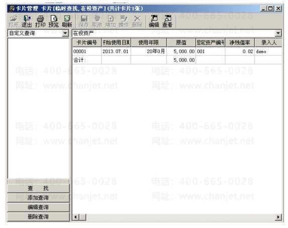 1、依次点击“固定资产”-“卡片”-“卡片管理”,选择“自定义查询