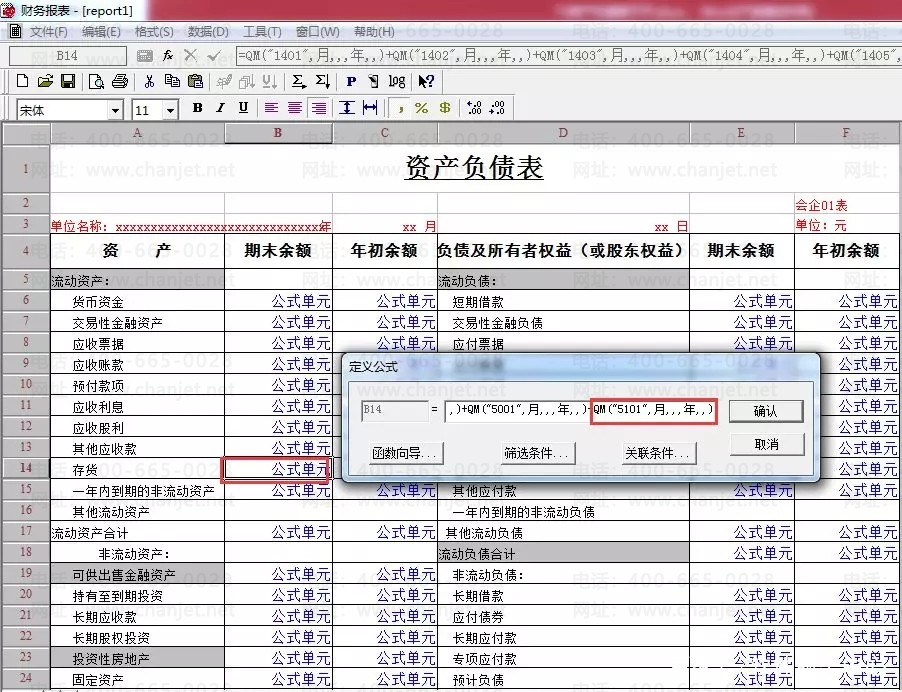 1. 在报表界面选中单元格,如果是【格式】状态双击出【定义公式】窗口;