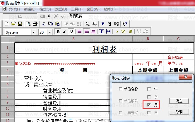 1、打开利润表,在格式状态下-选择数据菜单栏-关键字-取消