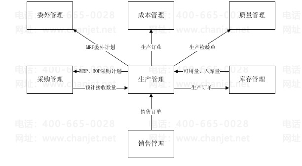 《生产管理》可以与《采购管理》、《销售管理》、《库存管理》、《委外管理》、《成本管理》集成使用,只有《采购管理》、《库存管理》启用后才能启用《生产管理》。