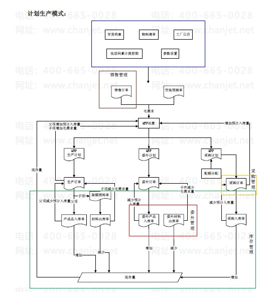 生产或委外部门根据生成的生产订单或委外订单依据参数设置分析,可生成材料采购计划;