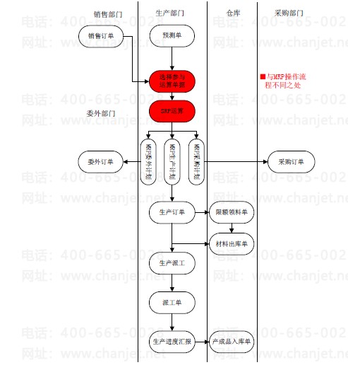 SRP(Sales Requirement Planning)生产是根据选定的销售订单或预测单直接依照物料清单上记录的使用数量推算各物料的毛需求量,再考虑现存量、预约量、在单量等进行净算,自动计算供应(采购、自制及委外)数量和日期,作为请购、采购、生产订单及委外订单计划依据。SRP是一种插单式生产模式。