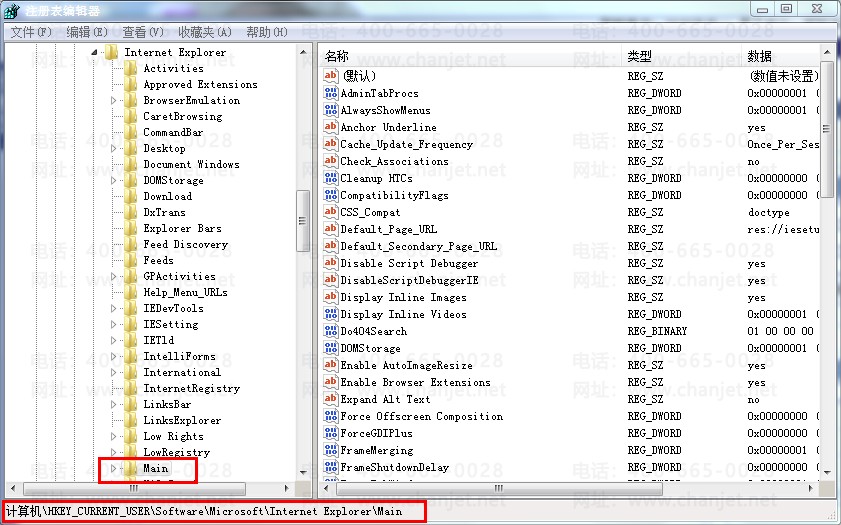 (2)展开至HKEY_CURRENT_USER\Software\Microsoft\Internet Explorer\Main:
