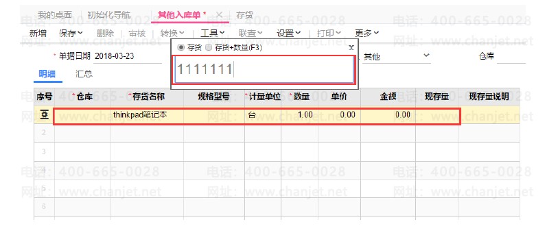 设置完条码方案之后,录出入库单据时 ,点击 【 更多 】 【 条形码录入 】 ,可以手工录入条形码 按 【 enter 】 之后 带出存货 也可以使用扫描设备扫描条码 扫描之后直接带出存货 。