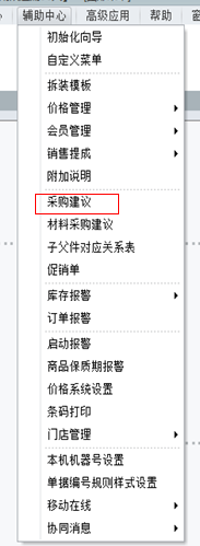 点击辅助中心--材料采购建议可以进入材料采购建议的界面里。