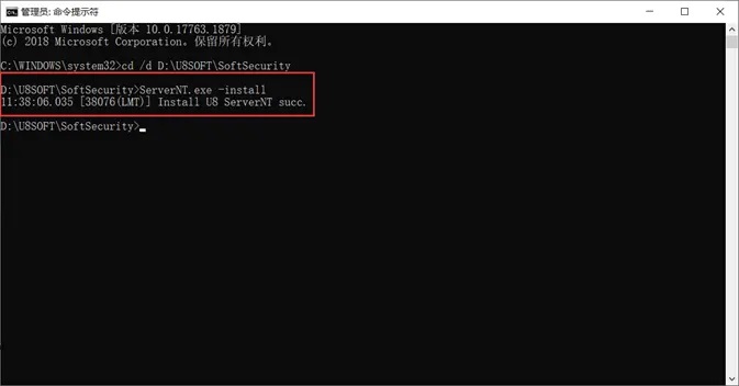 1.进入U8SOFT\SoftSecurity目录(管理员身份运行cmd)