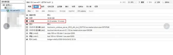 1. 霆智虚拟机进入虚拟机管理端,选中相应的服务器点击硬件,双击处理器;