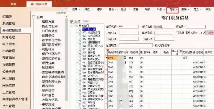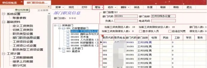 2)在基础数据管理—部门职员资料—增加职员