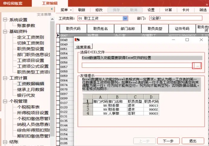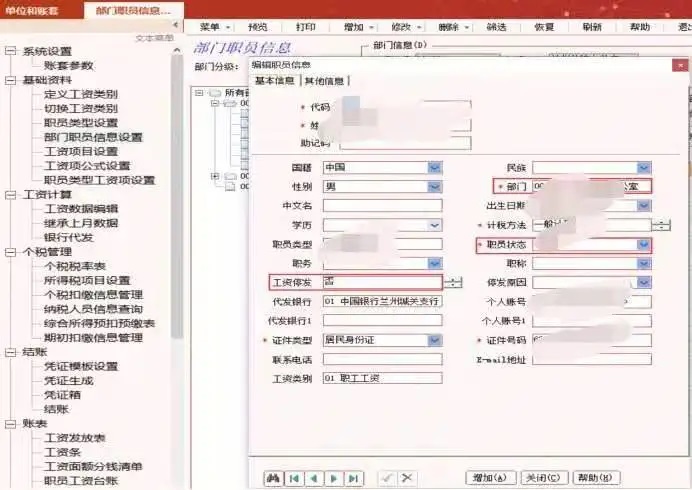 l 人员离职(工资停发):在基础资料—部门职员信息设置界面,选中离职的人员,双击或者点击修改,修改工资停发状态,点击√,关闭即可同步更新到工资数据编辑,在工资数据编辑正常录入工资即可。