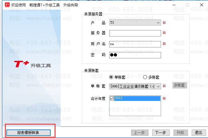 打开升级工具后,进入T+升级工具界面: