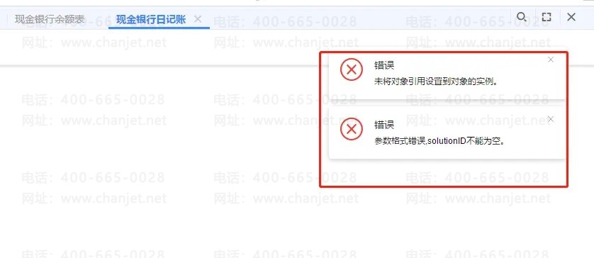 T+/往来现金/现金银行日记账提示参数格式错误,solutionID不能为空解决方式