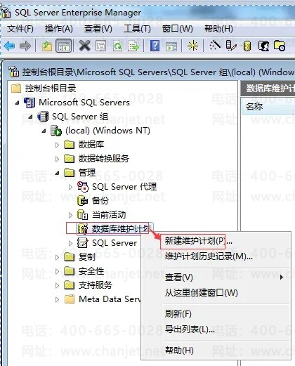 (2)点击开始---程序---sql server2005或者2008R2或者2012,然后找management studio,用windows身份登录,然后右键维护计划。