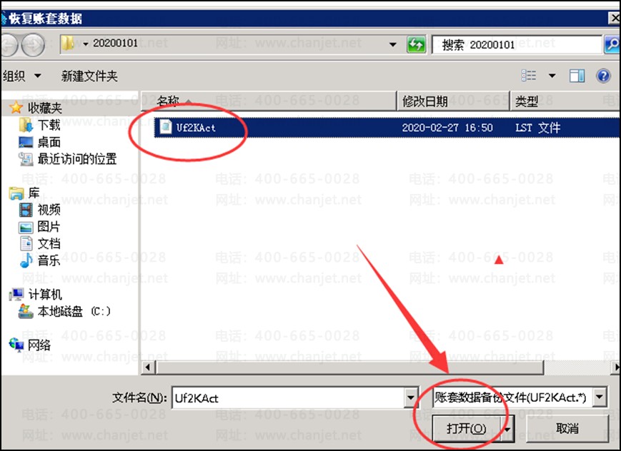 然后选中你备份的文件,点打开,系统就自动恢复数据了,如果账套号系统里面存在,恢复的时候会提示你是否覆盖