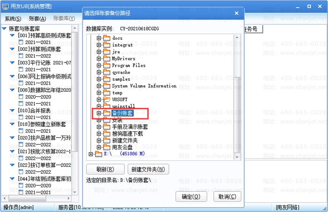 创建一个文件夹手动备份,然后在创建一个带有当前日起的文件夹。登录软件系统管理:系统--注册--admin登陆,点击确定就行了。一般admin的密码为空。然后在帐套--备份,这样会弹出一个小的对话框。