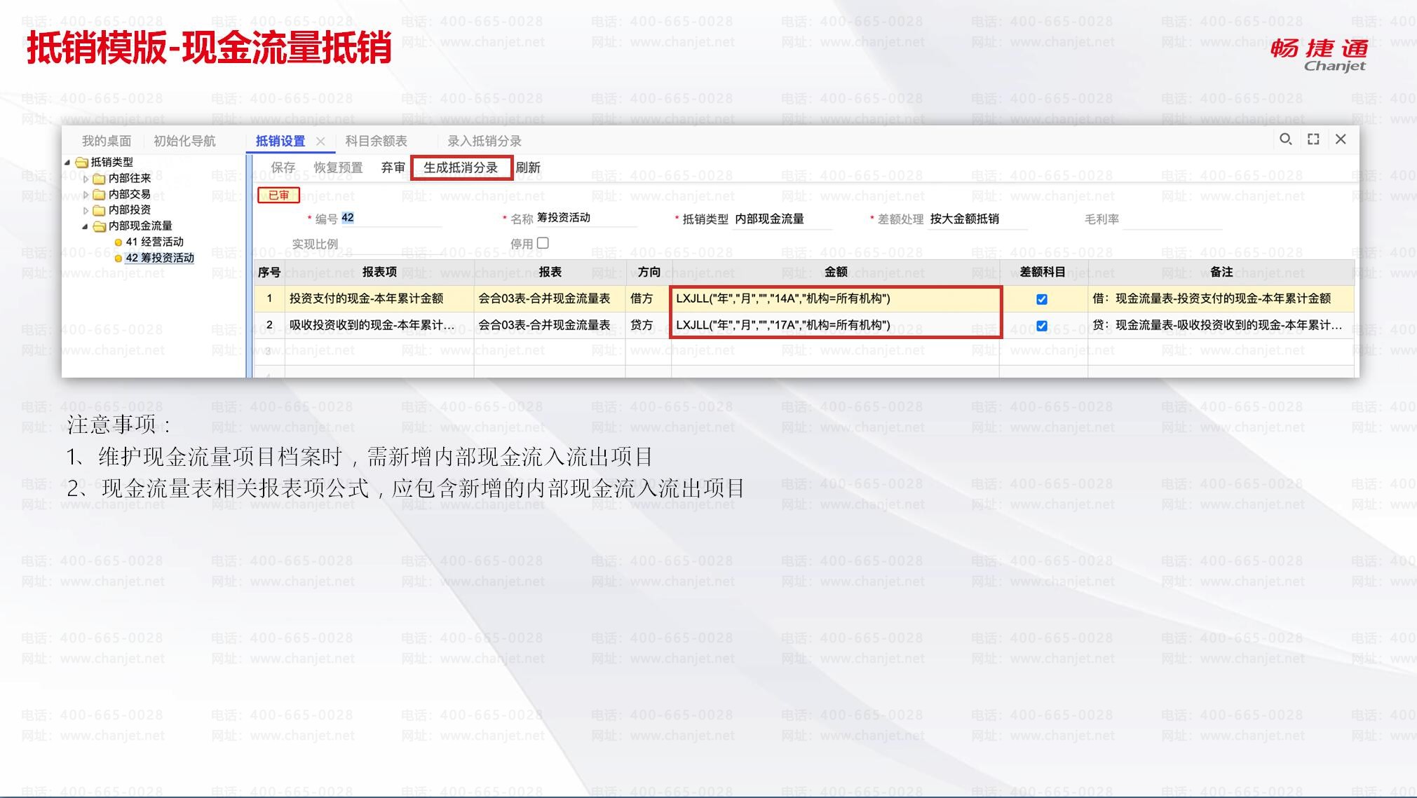 目前暂未规划内部现金流的自动抵销,可按以下方案实施: