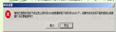 1、在会计科目档案中,点击“增加”按钮,增加明细科目,系统如下提示:
