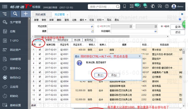 2.2、选中凭证后同时按住Ctrl+Alt+H取消记账