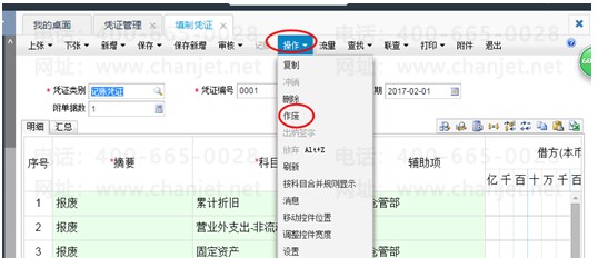 4.1、作废凭证:在填制凭证界面或者凭证管理界面找到要作废的凭证点击作废