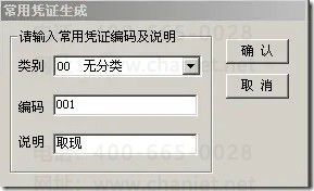 二、再点击制单-生成常用凭证,输入“代号”和“说明”后点击“确认”按钮;