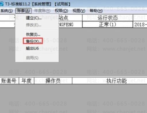 1.以admin的身份登录【系统管理】,点击【账套】-【备份】: