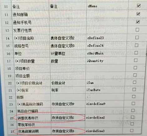 4、发票管理—设置—销项发票对照,设置销售优惠标识和优惠政策说明对照字段