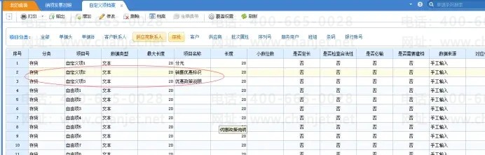 2、在u8自定义项档案中,存货自定义项启用2个字段,销售优惠标识和优惠政策说明