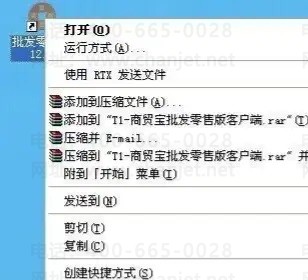 在服务器电脑上,右键点击桌面商贸宝图标,选择菜单最下方的属性