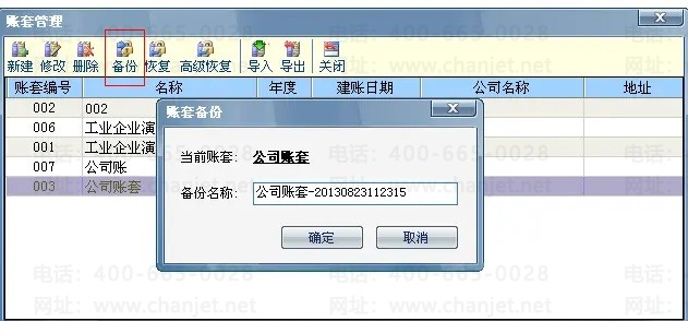 若账套中的数据被意外破坏,账套管理中账套已经不存在,只保存备份数据的种情况下,使用系统提供的高级恢复功能,可将最近一次的备份数据恢复到系统中;