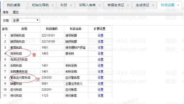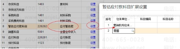 6、同理【应付暂估款科目】、【应付科目】,可以按不同的往来单位设置入账不同的明细科目。如果是科目挂了【往来单位】辅助核算,就不需要到扩张设置中定义。
