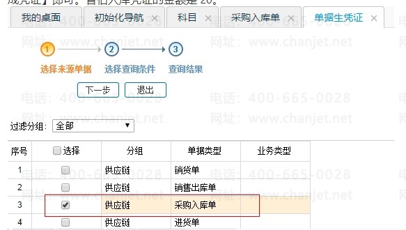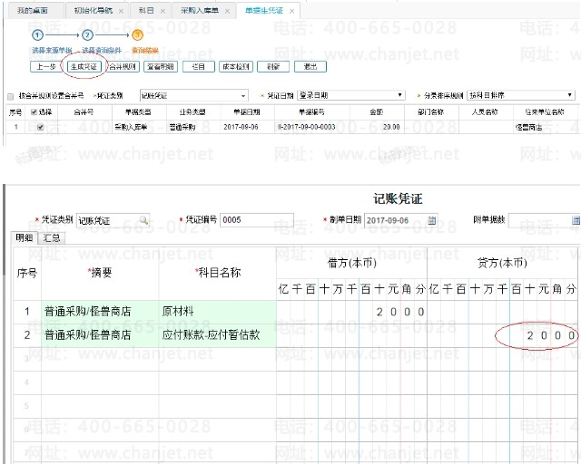 【总账】--【日常业务】--【单据生成凭证】,点击【下一步】、【下一步】,再点击【生成凭证】即可。暂估入库凭证的金额是 20。