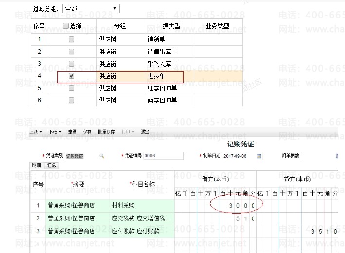 T+的单到回冲,是指当月做了入库单,在以后月份再录入进货单(或采购发票)。在单到回冲的情况下,进货单(采购发票)参照入库单生成保存、审核之后, 系统会自动生成红、蓝回冲单。