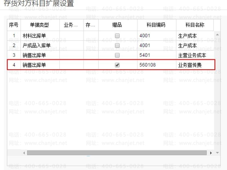 2、点击序号“增行”, 单据选择“销售出库单”,赠品打上勾后,设置科目为销售费用-业务宣传费;