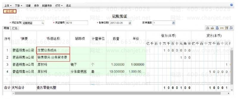 4、点击“总账”-“单据生凭证”,选择销售出库单,正常品走主营业务成本科目,赠品走 销售费用下的业务宣传费。
