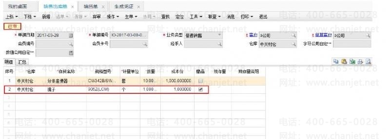 3、做一张销售出库单,对于赠品行,打上赠品的勾(若赠品没有出现,点击“操作”-“设置”把赠品字段勾选显示),后续生成销货单: