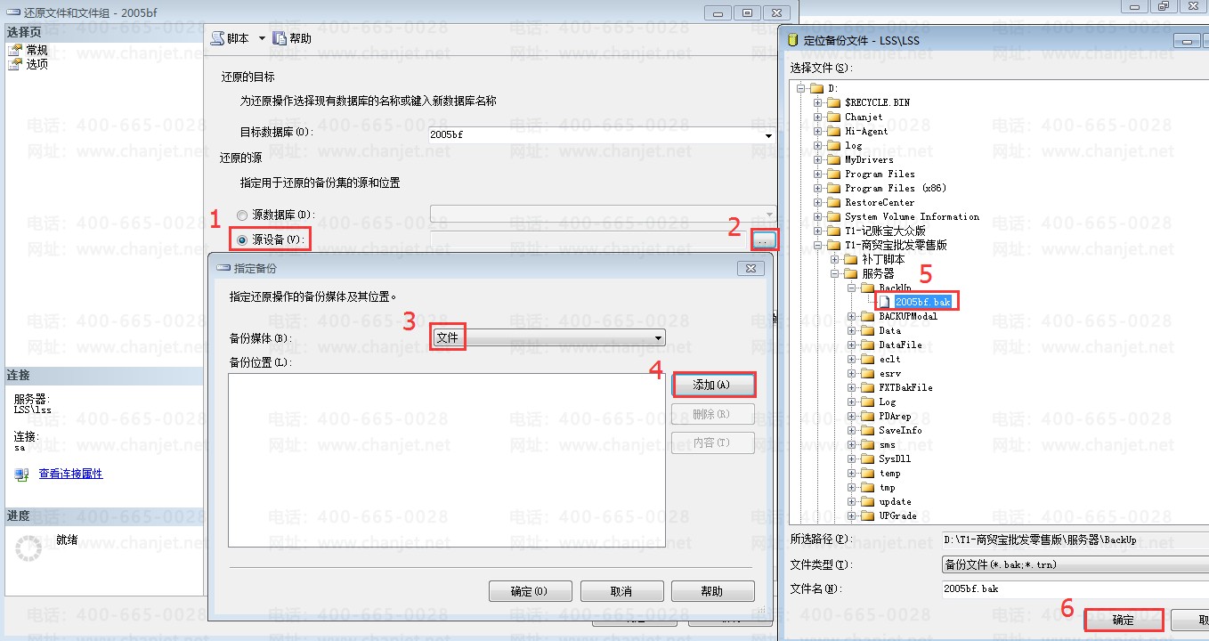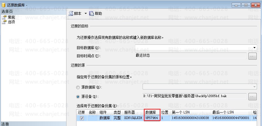 RESTORE headeronly from disk='D:\T1-商贸宝批发零售版\服务器\BackUp\2005bf.nsub'