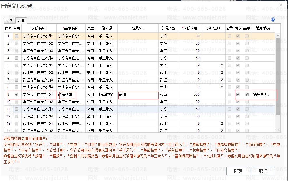 4、这种情况也可以通过存货自由项,但是不能使用到系统预制的枚举档案的品牌。