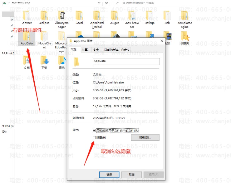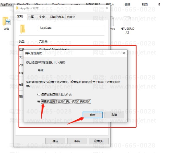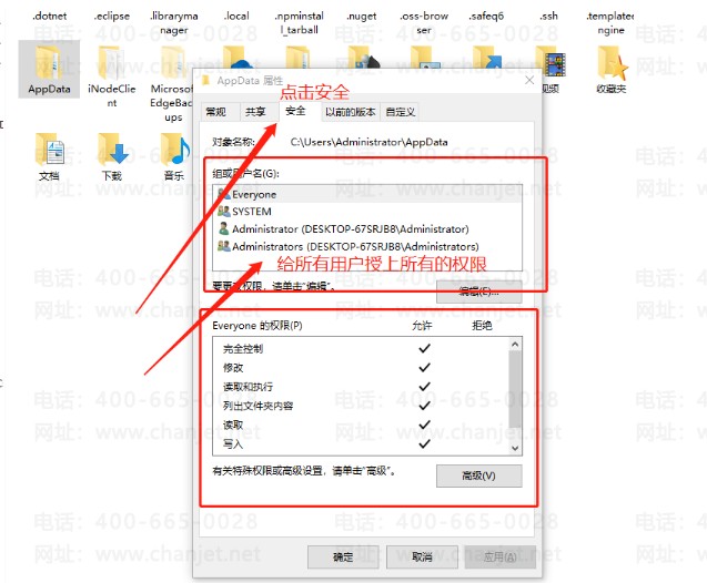 2.2设置AppData目录不隐藏且设置该目录所有的用户权限。
