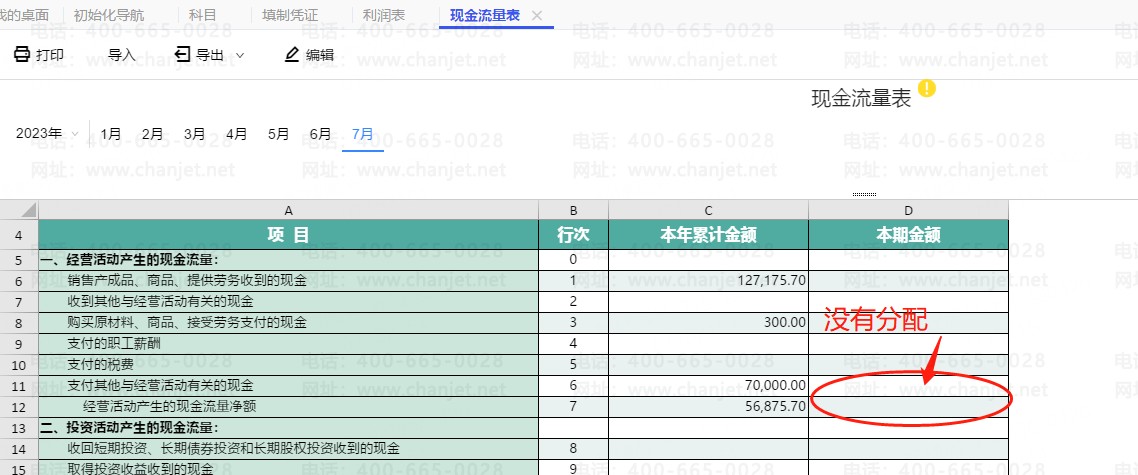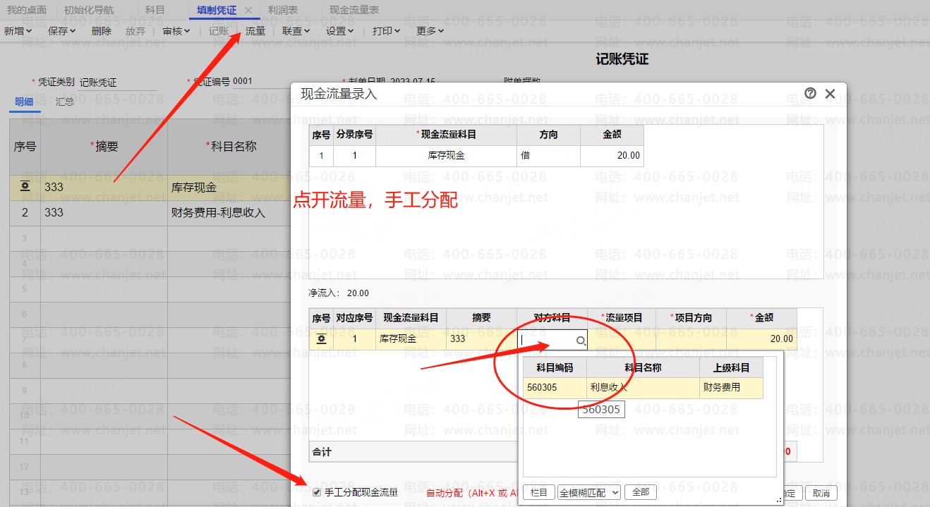 【填制凭证】-【手工分配现金流量】-输入对方科目,在确定,此时界面(已分配)还不会显示,需要先保存