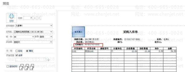 【问题摘要】:接到客户的电话咨询,客户流程是这样的:采购订单到进货单,再生成采购入库单。并且库管需要在采购入库单上,看到是由哪笔订单生成的,并且打印出来,可是库管发现在采购入库单上怎么找都找不到订单号,如何将订单号显示出来?