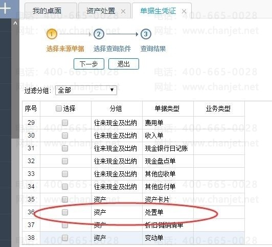 3、在总账-单据生成凭证中,对处置单进行凭证生成,生成凭证为