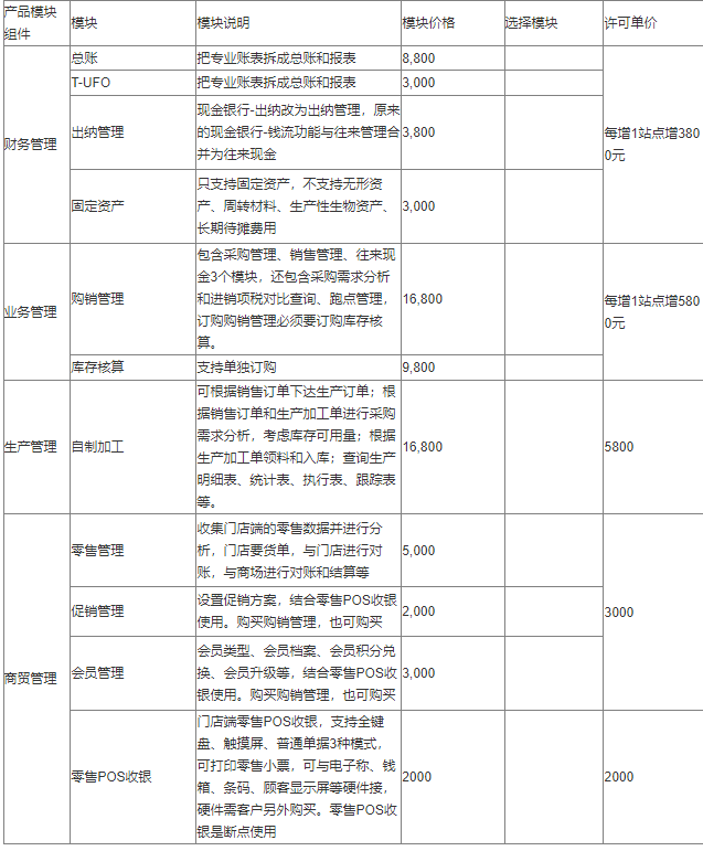 畅捷通T+是款适合小微企业使用的人财货客一体化ERP管理系统,很多小型的商贸型企业,小型生产企业等都会来咨询畅捷通T+这款软件的价格,今天用友小编就把畅捷通T+软件功能模块的官方报价放在下面供大家参考: