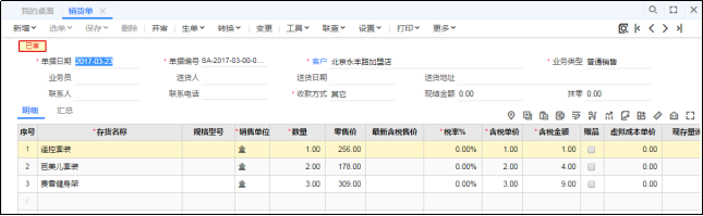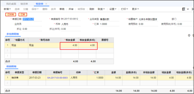 查询出来的记录中,销货单会根据明细记录的行数来显示,收款单则会根据收款单的金额匹配销货单,拆分成可核销明细的行数。