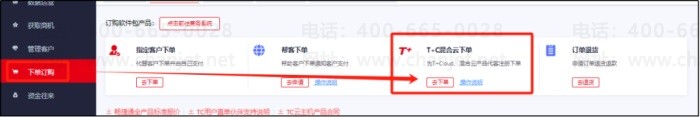 点击【下单订购】—点击【去下单】;选择T+Cloud专属云普及版代客下单,点击【立即下单】。