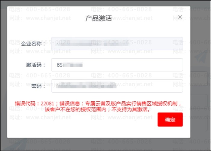 问题2:专属云普及版产品实行销售区域授权机制,该客户不在您的授权范围内,不支持为其激活。