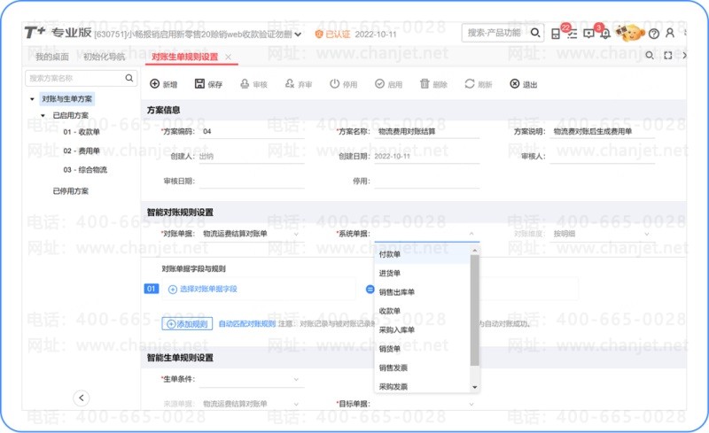 为满足企业多样化的对账需求及快速生成后续单据的场景,常州用友T+Cloud引入了「智能对账」模型。这一创新功能不仅允许用户自定义对账规则和生单方案,还支持自定义对账单格式及栏目,极大地提升了财务管理的灵活性和效率。