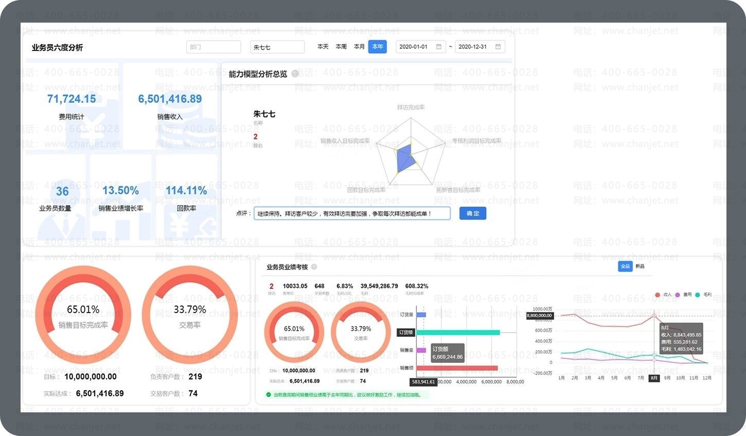 基于业务数据,建立业务员回款、销售全品收入、销售新品收入、拜访完成、利润、拓新完成率6度模型能力体系,一对一精 准分析,提升销售业绩