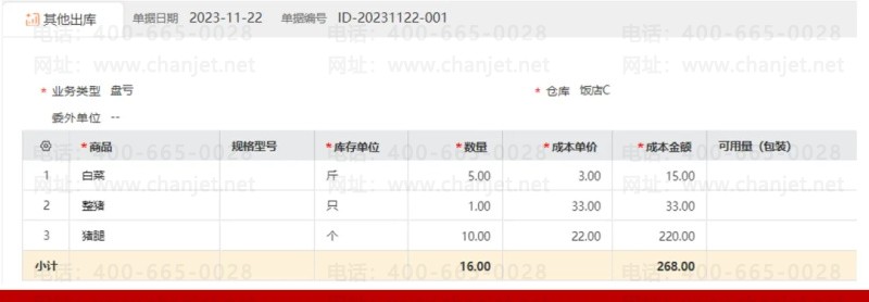 第四步:根据盘亏数量及成本,自动生成【其他出库单】出库。