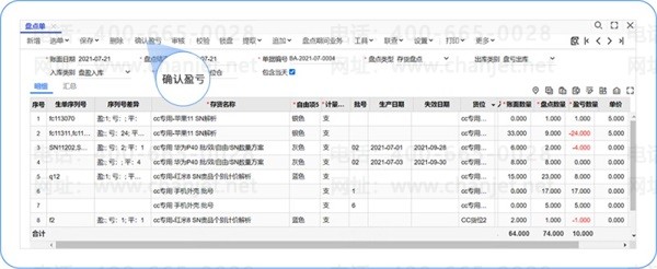 处理盘盈情况:若发生SN号盘盈,需要选择商品后补录序列号的具体信息,完成盘点入库的相关操作。
