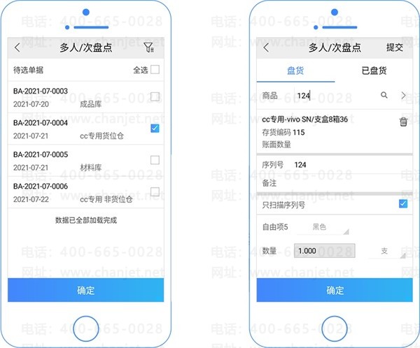 多人多次盘点功能:支持多人同时对同一张盘点单进行盘点,实现数量累加,适用于大规模仓库的操作需求。