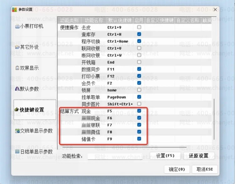 老零售结算方式的快捷键设置最多支持5个结算方式